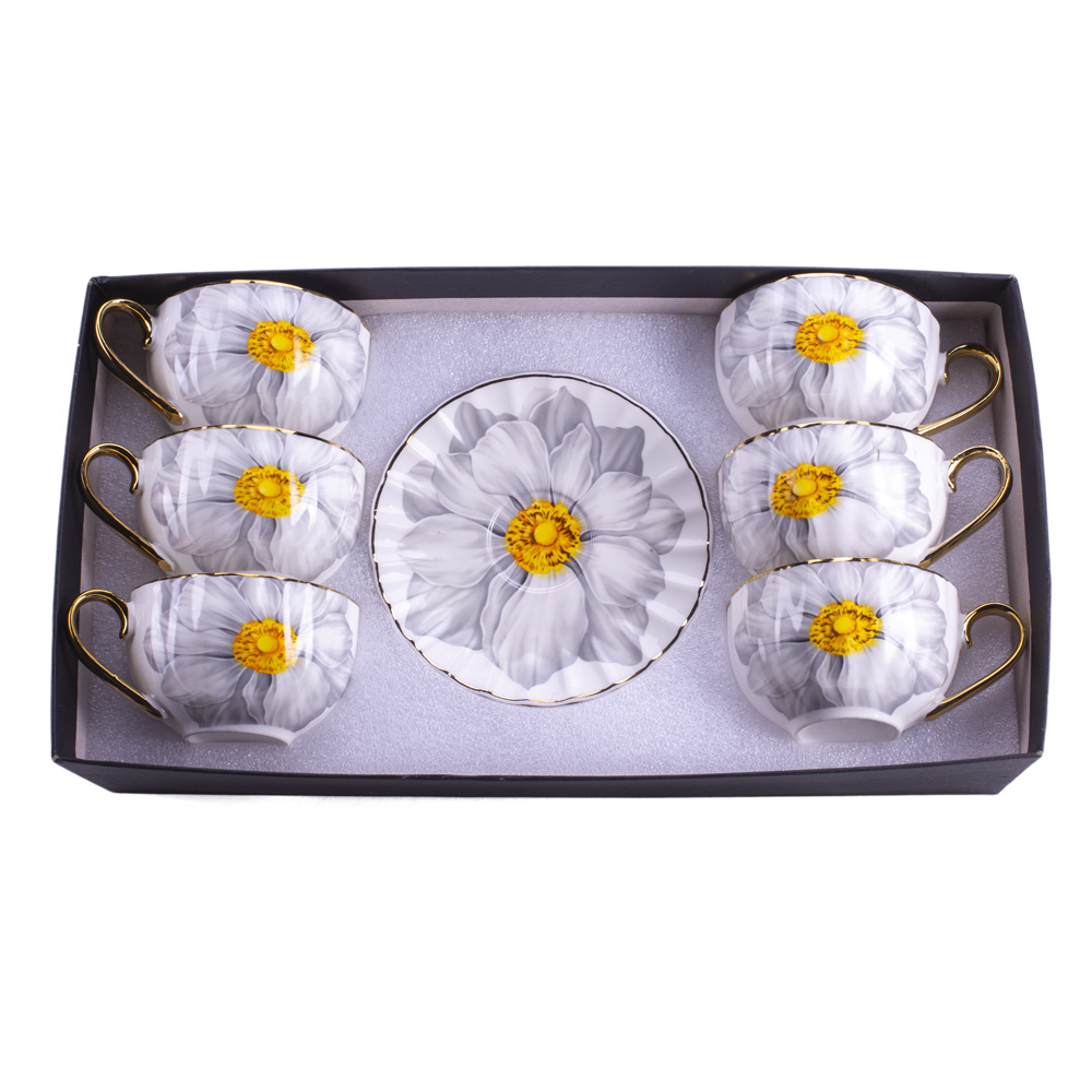 D-679A PORCELANSKE ŠOLJE BELE SA SIVIM CVETOM S/6 U POKLON KUTIJI