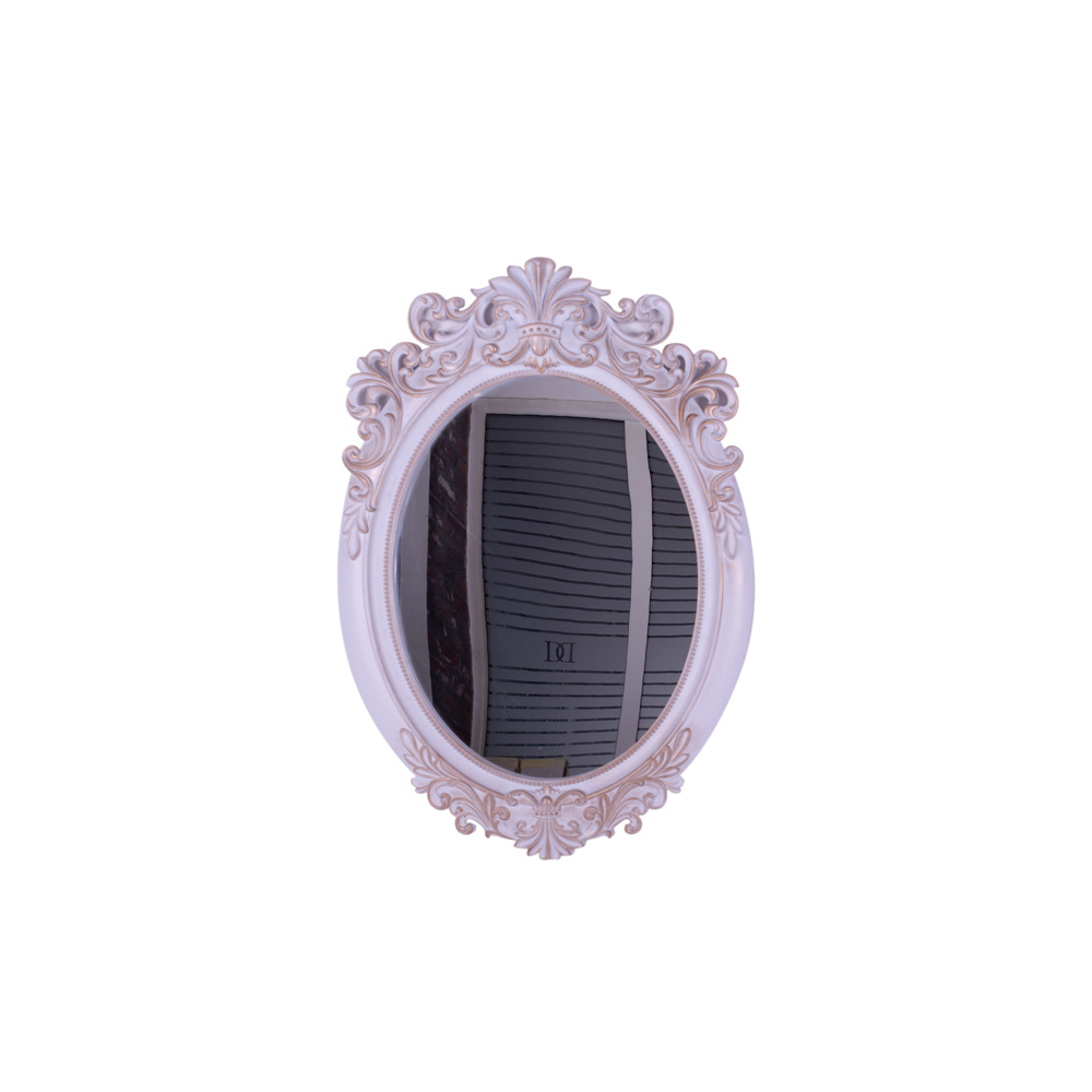 D-426 ZIDNO OGLEDALO ANTIK BELO OVALNO PLASTIČNO 68X48 CM